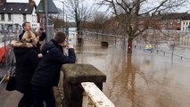 Dramatic footage shows buildings submerged in flood water after the rampant storms of Dudley, Eunice and Franklin in the past week caused water levels to rise.