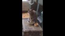 Funny cat eats food like a human