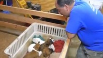 Diese Welpen haben keine Lust zu schlafen. Aber dieser Mann hat eine ganz eigene Technik, sie zum Schlafen zu bringen.