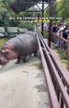 Un hippopotame qui sait accueillir les visiteurs du zoo