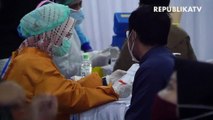 Vaksinator bersiap untuk melakukan vaksinasi saat vaksinasi Covid-19 massal di Poltekkes Kemenkes Bandung, Jalan Pajajaran, Kota Bandung.