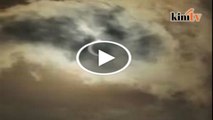 Rakaman fenomena gerhana matahari separa dari Masjid Negara, Kuala Lumpur disusuli solat sunat gerhana secara berjemaah.