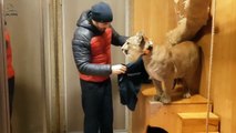 Tous les jours, il est accueillit par son puma de compagnie