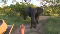 Quand un éléphant charge la voiture de touristes en Afrique du Sud