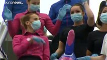 À terre, les hôtesses de l'air dansent : chorégraphie à l'aéroport de Budapest