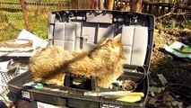 Ce chat se prélasse dans la boîte à outils de son maître