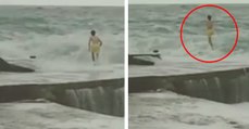 Un jeune inconscient se jette dans une mer déchaînée !