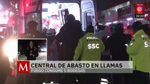 Incendio arrasa con 5 bodegas en la Central de Abasto de Iztapalapa
