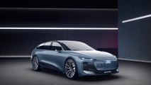 Zugleich resultiert aus dem Feinschliff im Windkanal erneut ein organisches Design mit einem Höchstmaß an Eleganz und Harmonie im Detail. Große 22-Zoll-Räder und kurze Überhänge, die flache Kabine und der dynamische Dachbogen des Avant bestimmen die signifikant sportlichen Proportionen. Der Verzicht auf harte Kanten sorgt im Karosseriekörper für sanfte Übergänge zwischen konvex und konkav ausgeformten Flächen, für weiche Schattenverläufe. Besonders in der Seitenansicht wirkt der Audi A6 e-tron concept monolithisch, wie aus einem Guss.