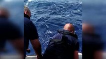Yelkeni kırılan teknesinde mahsur kalan genci deniz polisi kurtardı
