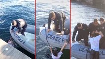 Can pazarı kamerada: Suya düşen genci deniz polisi kurtardı