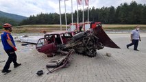 Otomobilde sıkışan sürücü, itfaiye ekiplerinin müdahalesi ile bulunduğu yerden çıkarıldı.