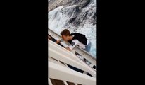 Un enfant suspendu au dessus du vide attaché à une corde pour récupérer un chat