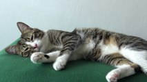 Sweet Cat Relaxes on a Green Blanket (1)