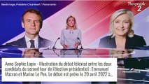 Extrait du débat de l'entre deux tours des présidentielles avec Marine Le Pen et Emmanuel Macron. La cheffe du RN a fait un faux départ, démarrant son discours trop tôt.