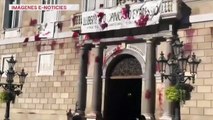 Trabajadores de la restauración lanzan tomates contra la Generalitat