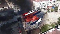 Esenyurt'ta 5 Katlı Binanın Çatısında Çıkan Yangın Havadan Görüntülendi