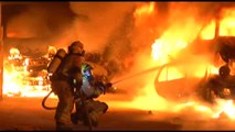 Un impresionante incendio devora varios coches de un desguace en Pontevedra