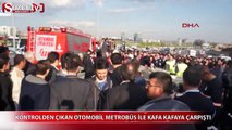 Çekmeköy’de cadde üzerinde iki otomobil kafa kafaya çarpıştı. Çarpışma sonrası otomobillerden birisi yol kenarında bulunan beton mantarları kırdıktan sonra iş yerine girdi.