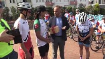 Yaklaşık 1350 kilometre pedal çevirerek Selanik'ten aldıkları toprakla Samsun'a ulaşmayı hedefleyen bisikletlileri, Karasu ilçe merkezinde Türk bayrağı açan vatandaşlar karşıladı.