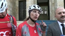 Gazi Mustafa Kemal Atatürk'ün Selanik'teki evinden alınan toprak ve bayrağı Samsun'a ulaştırmak üzere yola çıkan 3 bisikletli Sakarya'ya geldi.