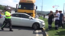 Tırın çarptığı otomobil metrelerce sürüklendi
