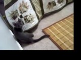 These adorable kittens and ferrets enjoyed having each other's company. They cuddled together in their bed while they took a quick nap.