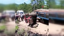 Kazada sürücü yaralandı, araçtaki tomruklar şarampole savruldu.