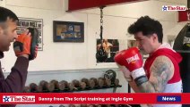 The multimillion-selling band's singer warmed up for their show in the city on Thursday with a boxing session. WARNING: contains some strong language.