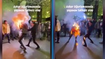 ANTALYA - Antalya'da arkadaşlarını askere uğurlamak için omuzlarına alan gençler, asker adayını havaya fırlattıkları sırada tutamayıp yere düşürdü. O anlar uğurlamaya gelen diğer vatandaşların cep telefonu kamerasına yansıdı.