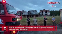 DÜZCE - Düzce'de sabah saatlerinden itibaren başlayan sağanak yağış aralıklarla devam ederken, akşam saatlerinde inşaat halinde ki binaya yıldırım düştü. Alevlerin yükseldiği binada yangın kısa sürede söndürüldü.