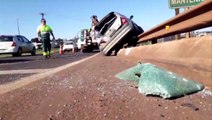 Vídeo mostra carro capotando após colisão com caminhão no Trevo Cataratas