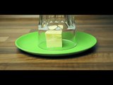 Er stülpt ein Glas über die harte Butter. 2 Minuten später hat er das perfekte Frühstück.