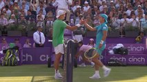 Ryan Peniston a sorti la performance de ce 1er tour du tournoi d'Eastbourne en éliminant le 1/4 de finaliste de Rolang Garros, Holger Vitus Nodskov Rune, en 3 sets (4-6, 7-6, 6-1).