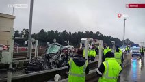 Alınan bilgiye göre, otoyolun Edirne yönünde ilerleyen 39 DV 063 plakalı tır, Silivri mevkisinde bariyerlere çarparak devrildi.