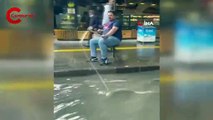 Ankara’nın Keçiören ilçesinde bir vatandaş etkili olan sağanak yağış sebebiyle göle dönen caddede balık tutmaya çalıştı.