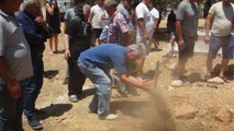 Defin sırasında Yusuf Erol, oğlunun mezarına elleriyle toprak attı.