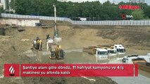 Şantiye alanı göle döndü, 11 hafriyat kamyonu ve 4 iş makinesi su altında kaldı