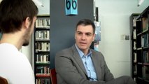 Sánchez charla sobre las becas con cuatro jóvenes en una biblioteca de Fuenlabrada