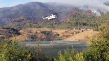 HAVADAN MÜDAHALELER BAŞLADIYaklaşık 600 hektar alanda etkili orman yangını için sabahın ilk ışıkları ile havadan yoğun bir müdahale başladı. Havadan 12 uçak ve 27 helikopter yanan saha üzerine sürekli sorti yaparak su atmaya başladı. Haber