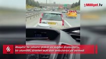 Balıkesir’in Ayvalık ilçesinde sirenlerini çalarak yol isteyen ambulansa ısrarla yol vermeyen şehirlerarası yolcu otobüsü, vatandaşlar tarafından cep telefonu ile görüntülendi.