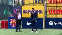 El presidente Joan Laporta da la bienvenida a Raphinha / CULEMANÍA