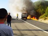 Edinilen bilgilere göre olay, sabah saatlerinde Silivri-Çerkezköy yolu Büyükçavuşlu mevkiinde yaşandı. Hareket halindeki hafif ticari araçta henüz belirlenemeyen bir nedenle yangın çıktı. Araçtakiler kendilerini dışarı atarken, yangın bir anda büyüdü. Tüm aracın alevler içerisinde kaldığı olayda ölen ya da yaralanan olmadı.