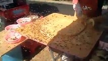 Chinese street food vendor isn't going to let a few bees stop him.