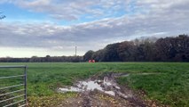 An aircraft has crashed into a tree near a pub