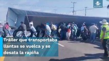 La volcadura de un tráiler que transportaba carne de cerdo desató la rapiña entre pobladores del municipio de Xicohténcatl, #Tamaulipas.