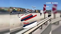 Üst geçitte tehlikeli kaza! Faciaya ramak kala durdu