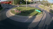 Heartstopping footage shows speeding car flying over roundabout