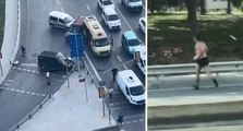 İstanbul Bayrampaşa'da iki araçtaki kişilerin trafikteki silahlı kavgası kaza ile sona erdi. Kaza sonrası şüphelilerden biri yarı çıplak şekilde olay yerinden kaçtı.