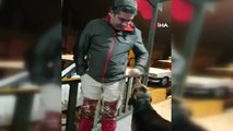 Gümüşhane’de bir sokak köpeğinin kendisini seven muhtarın çantasını taşıdığı anlar cep telefonu kamerasına yansırken, o anlar izleyenleri gülümsetti.